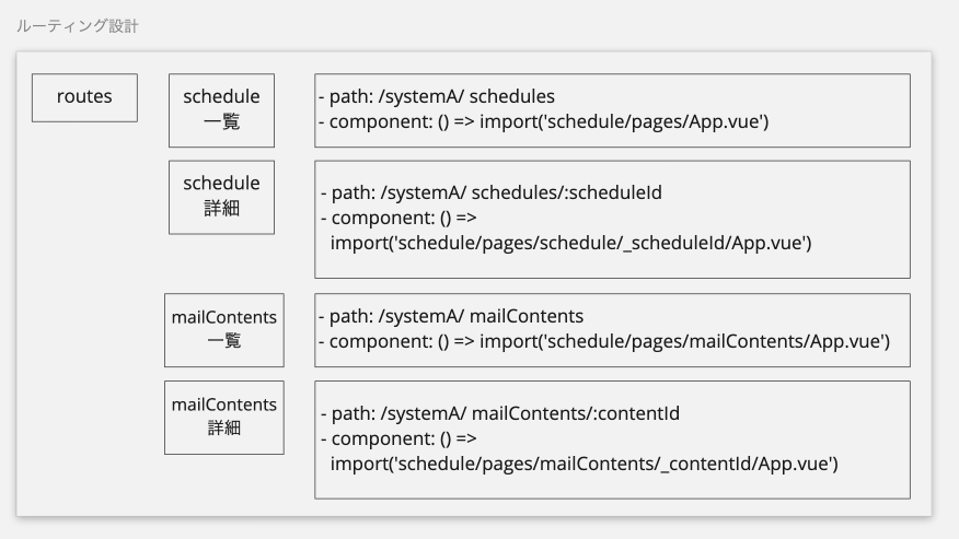 また、ディレクトリとルーティングを読み替えて考えるオーバーヘッドをなくすため、ルーティングのパスと同期するように設計しました。