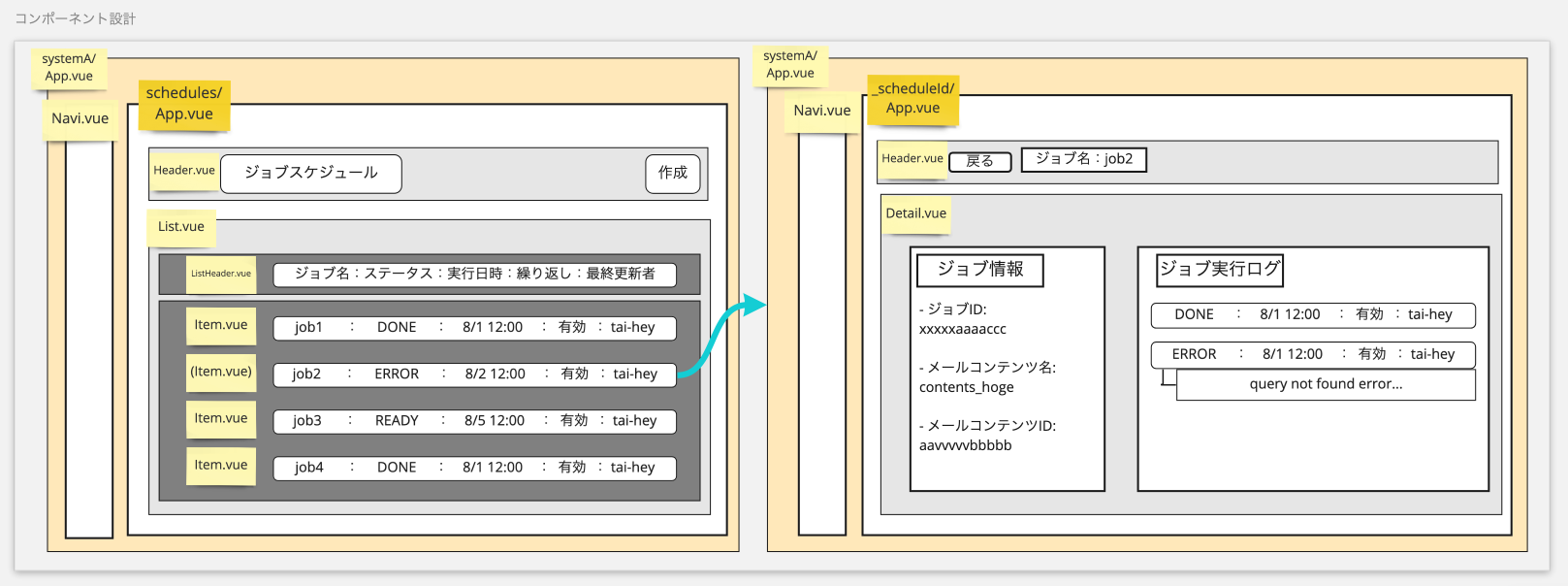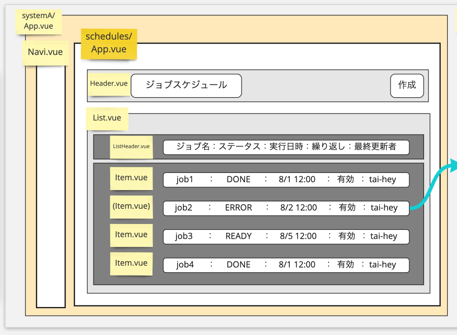 こちらはジョブスケジュールの一覧画面です。(以下.vue省略)