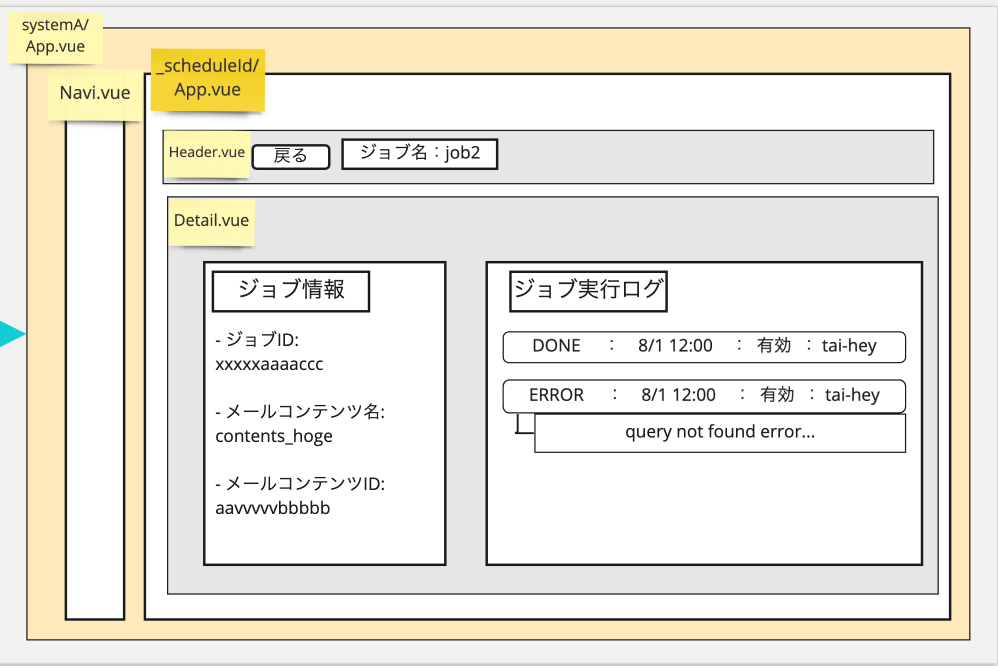 スケジュール画面と似たような形でHeaderとジョブ情報のDetailで分けていきます。