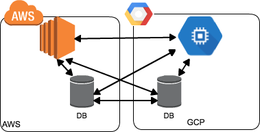 - Cloud BigtableやBigqueryなどGCPのサービスを多く使うサーバは主にGCPで、DynamoDBなどAWSのサービスを多く使うサーバは主にAWSで稼働させる。