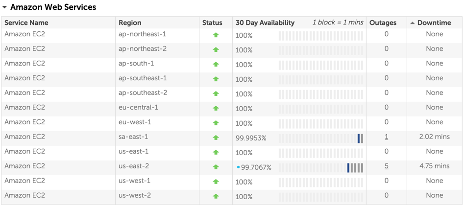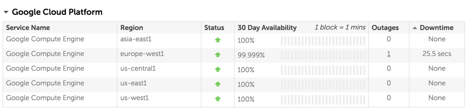 CloudHarmonyというサービスで過去の稼働率を確認することが出来るのですが、例えば、EC2、GCEにおいてもDowntimeはそこそこ発生しているようです。