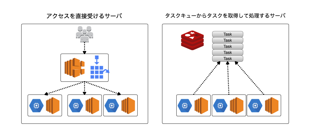 という特性の「タスクキューからタスクを取得して処理していくサーバ群」から移行を始めることにしました。