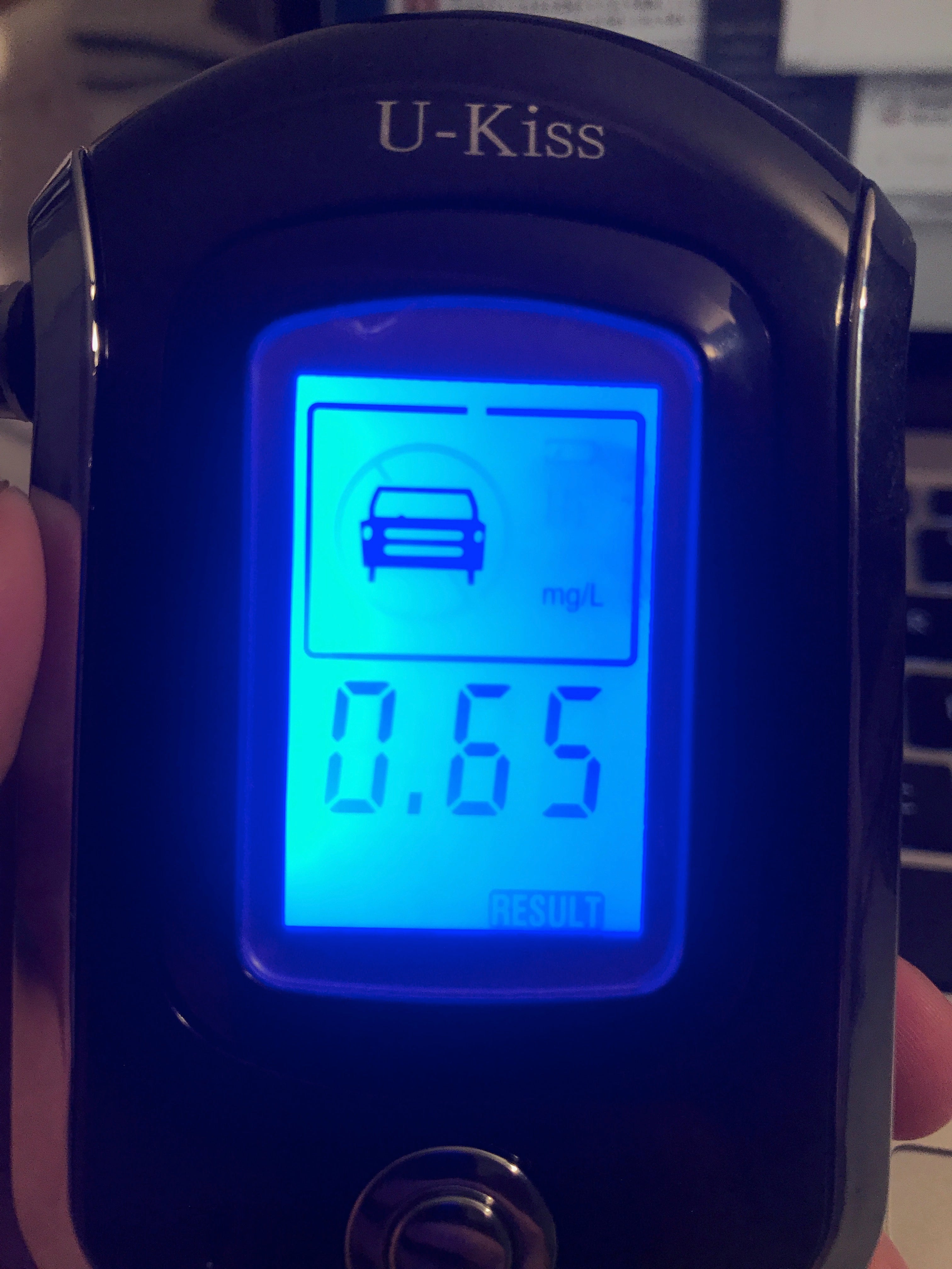 (余談ですが本当は国内メーカーのものを使いたかったのですが、おそらく車の運転可否の判定に主眼を置いているのか、濃度の測定範囲が今回のピークより低かったため、この製品を利用します。)