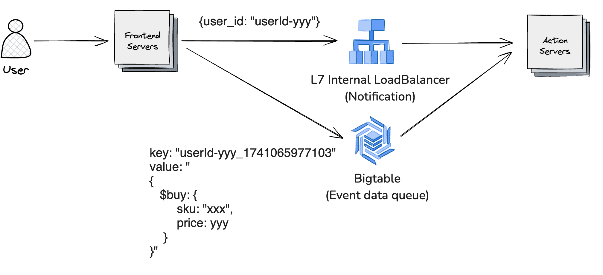 前記事でも述べた通り、Blitzではアクションサーバの前段にBigtableベースのイベントキューがあります。また、キューにイベントが追加されるとLoadBalancer経由でアクションサーバに通知されます。