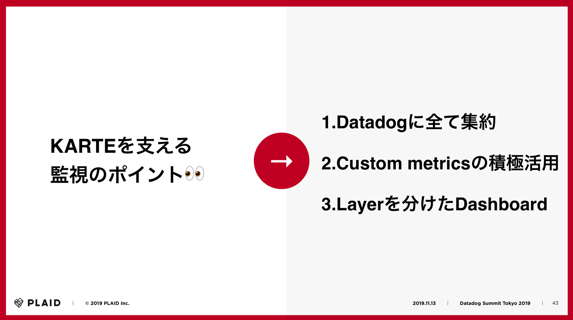 こんにちは。エンジニアの@ikemonnです。02019/11/13にDatadog Summit Tokyoで「マルチクラウドな大規模サービスKARTEを支えるDatadog」というテーマで登壇してきました。