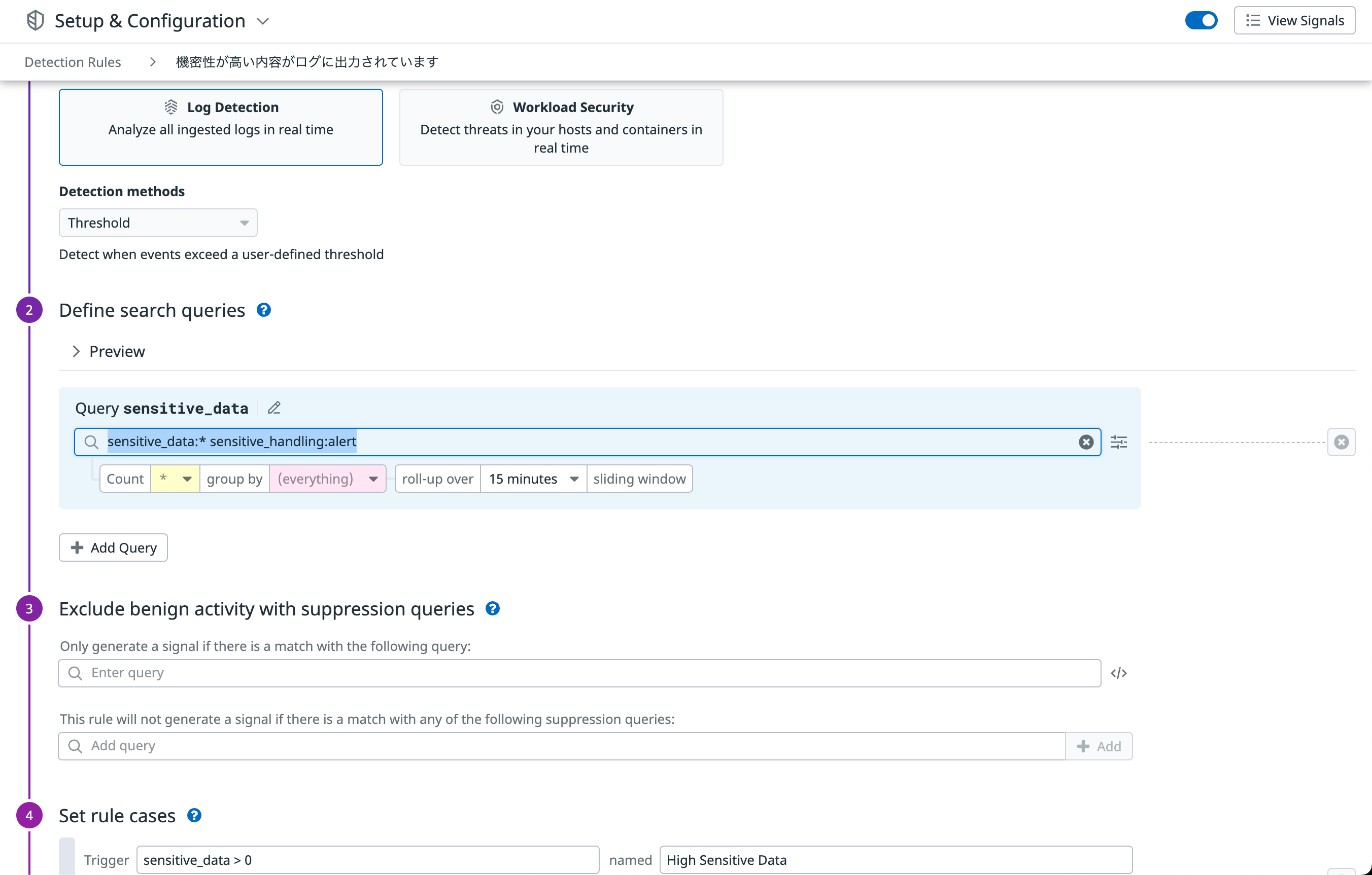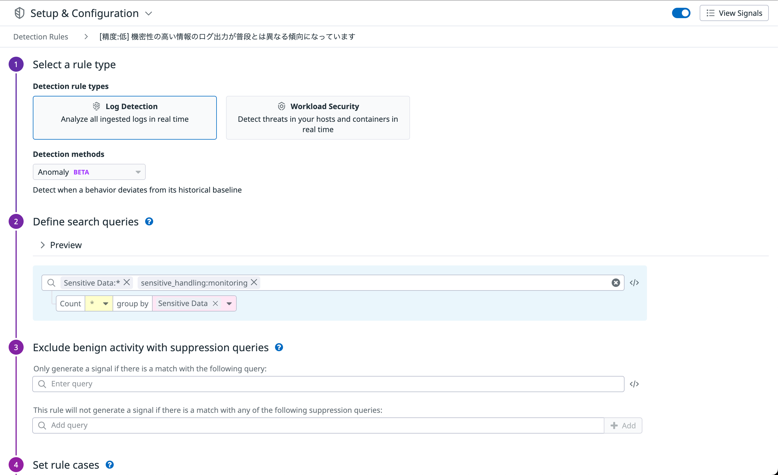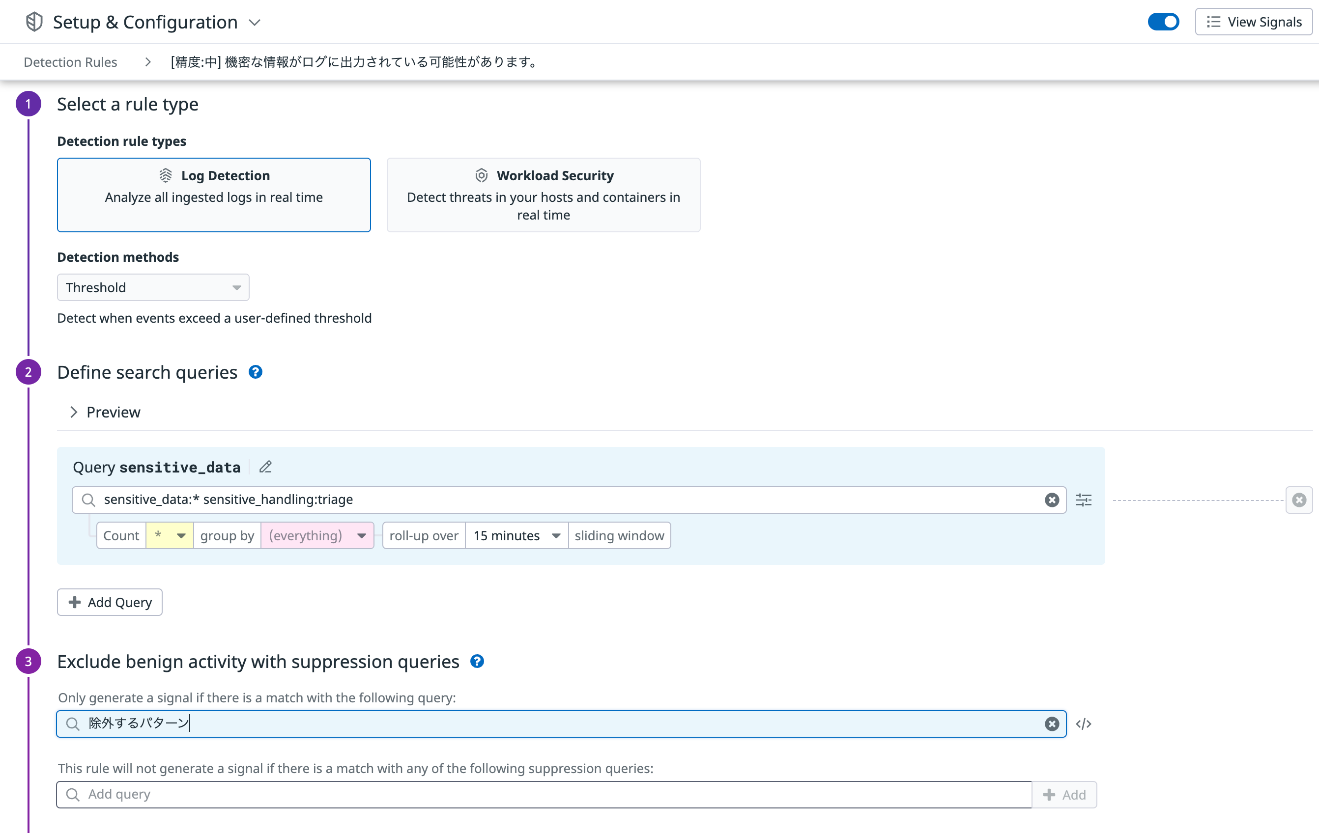 Datadogのセンシティブデータスキャナーとセキュリティシグナルを利用して、次のようなものを実装しました。