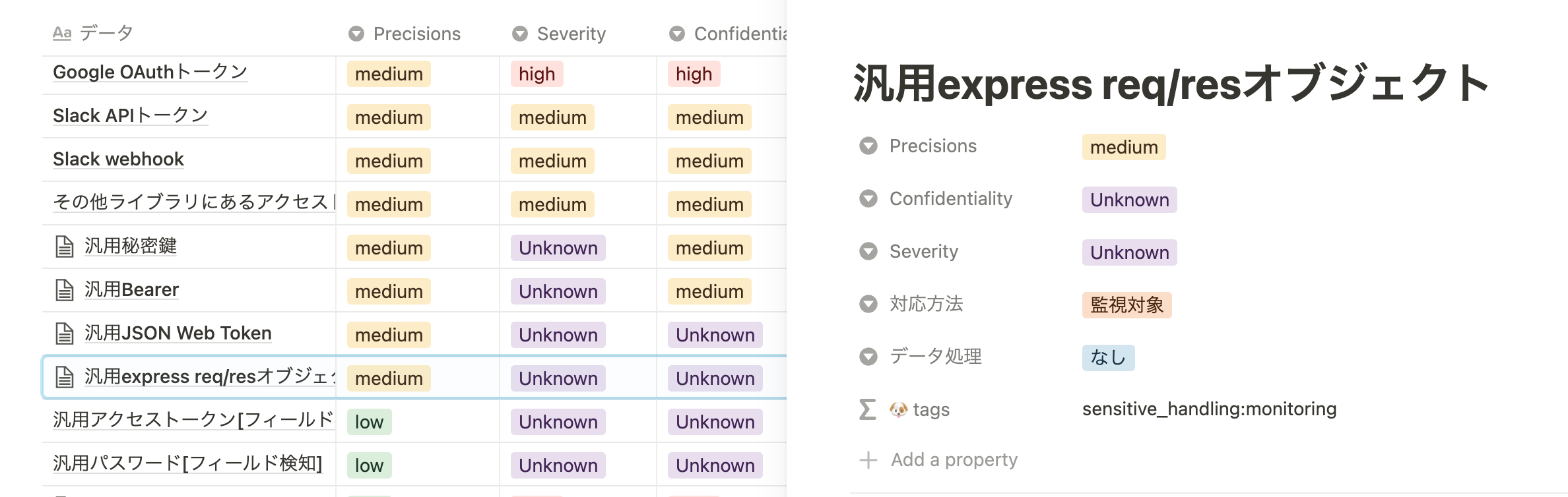AWSのアクセストークンは、Severity と ConfidentialityがどちらもHighだったので部分マスキングするという方針になります。