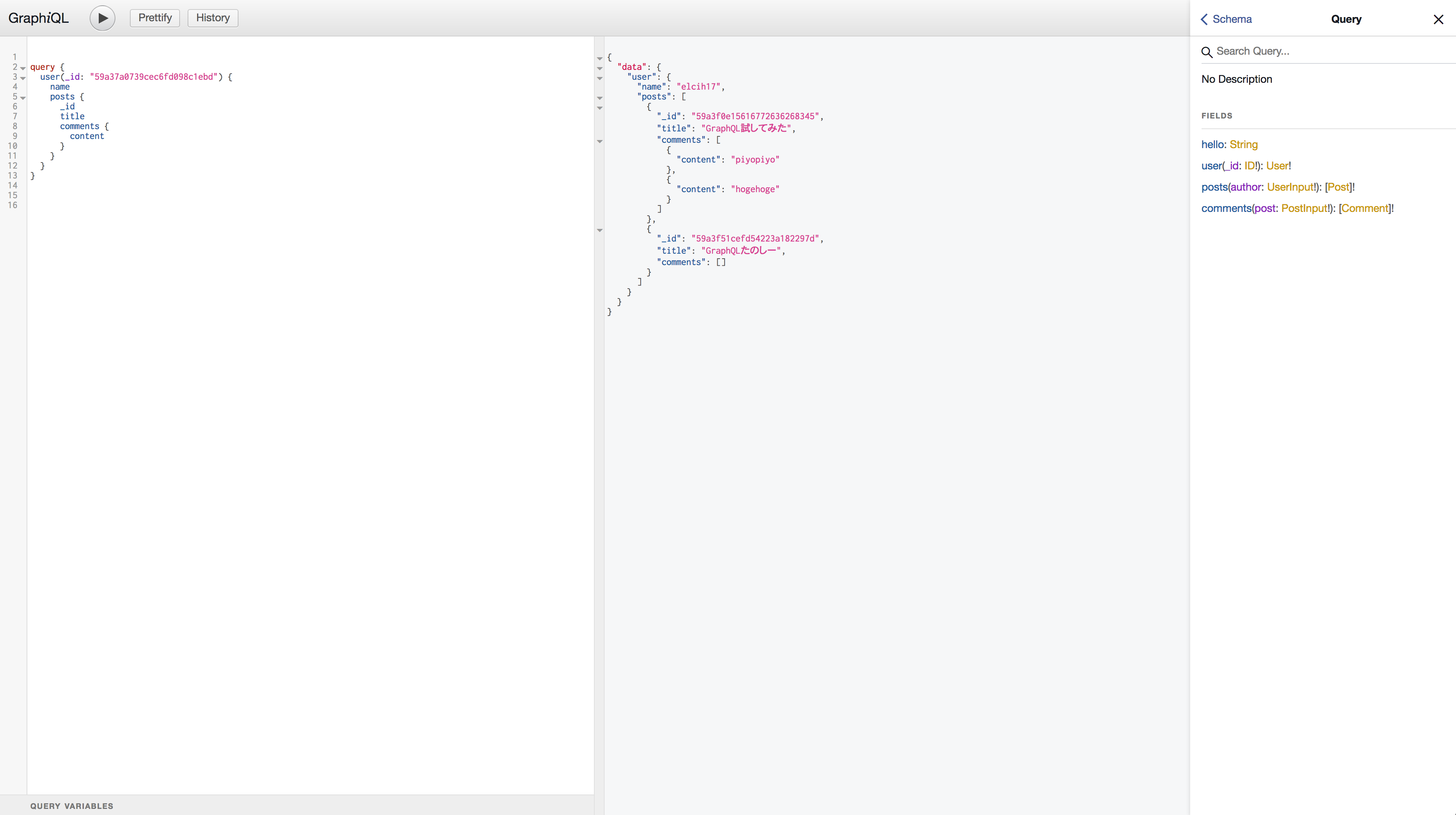 - 後述するGraphiQLで見ることが出来るAPIドキュメントはスキーマ定義から自動生成される