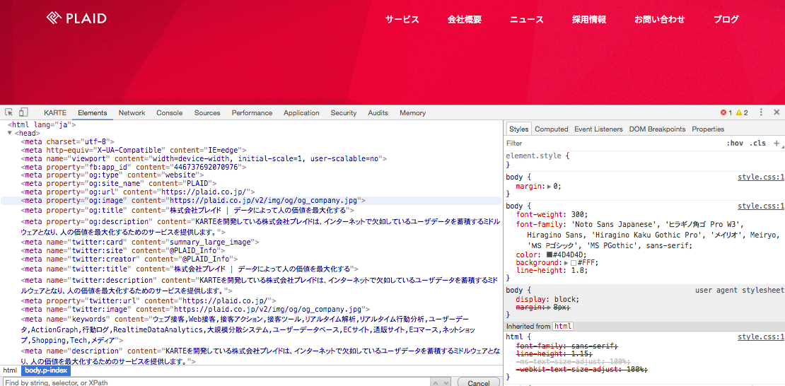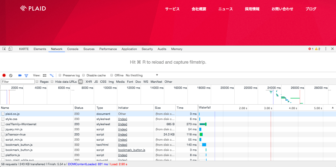 そんなときは、「Chromeデベロッパーツール」を使って、お客様のサイトで「KARTE」が動作しない原因を調査します。