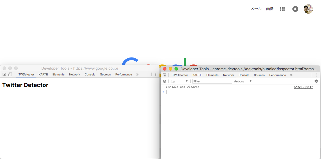 );ここでは、chromeのAPIを使って、TWDetectorという名称のPanelを新たに追加しています。