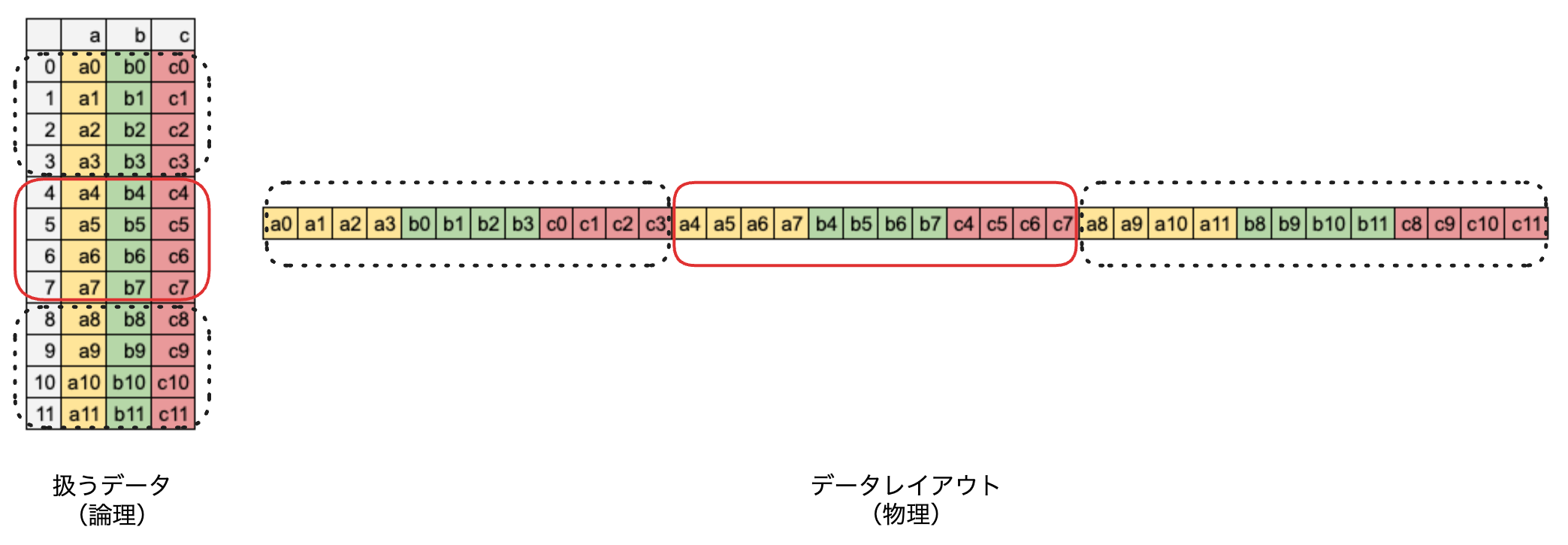 この挙動を考慮すると、データをどう並べて保持しておくか(データレイアウト)がデータ読み込みの際に重要ということになります。