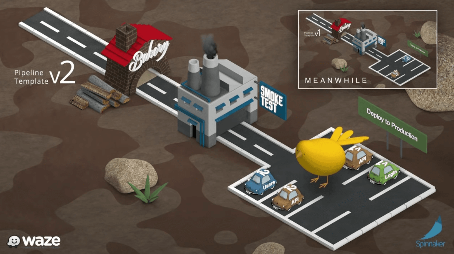 v1ではまだリスクがあったので、canaryステージを追加し、 bake -> smoke test -> canary -> deploy を作ったりと徐々にpipelineを改善していったそうです。