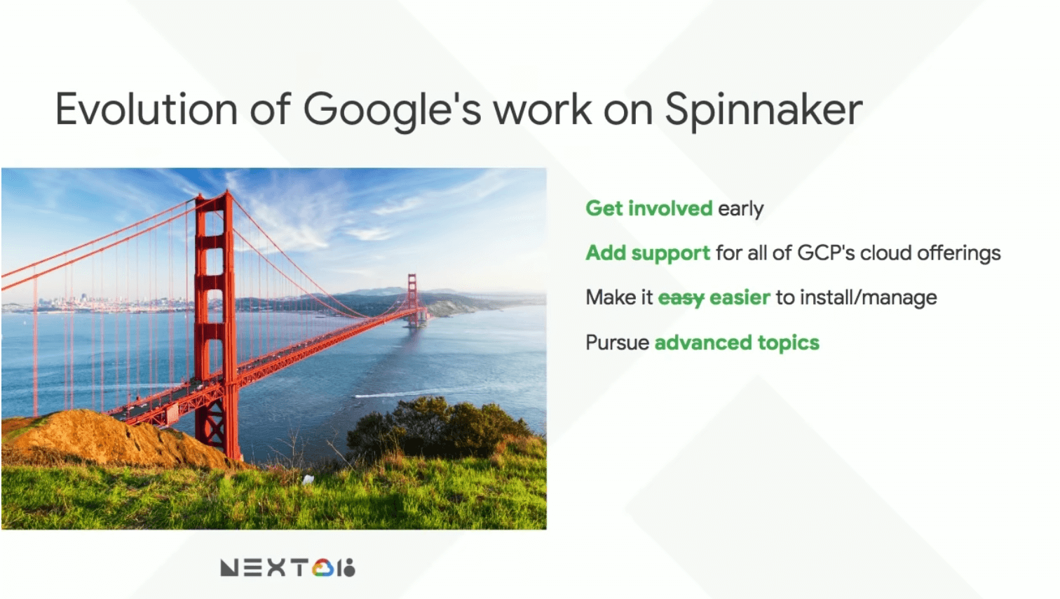 Googleとして早い段階からSpinnakerの開発に関わっており、 2014年に20%プロジェクトとして、とあるエンジニアがSpinnakerに関わりだしたのが始まりだそうです。