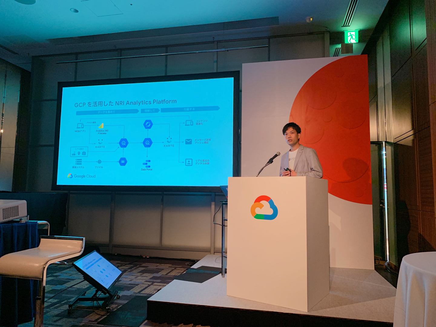 「GCP をフル活用した「KARTE Datahub」で挑む次世代のデータ活用」というテーマで、PLAIDのストラテジックパートナーであるNRIデジタル様との取り組みである、リアル接点を活用した次世代のデータ活用事例「リアル・デジタルマーケティング」を発表しました。