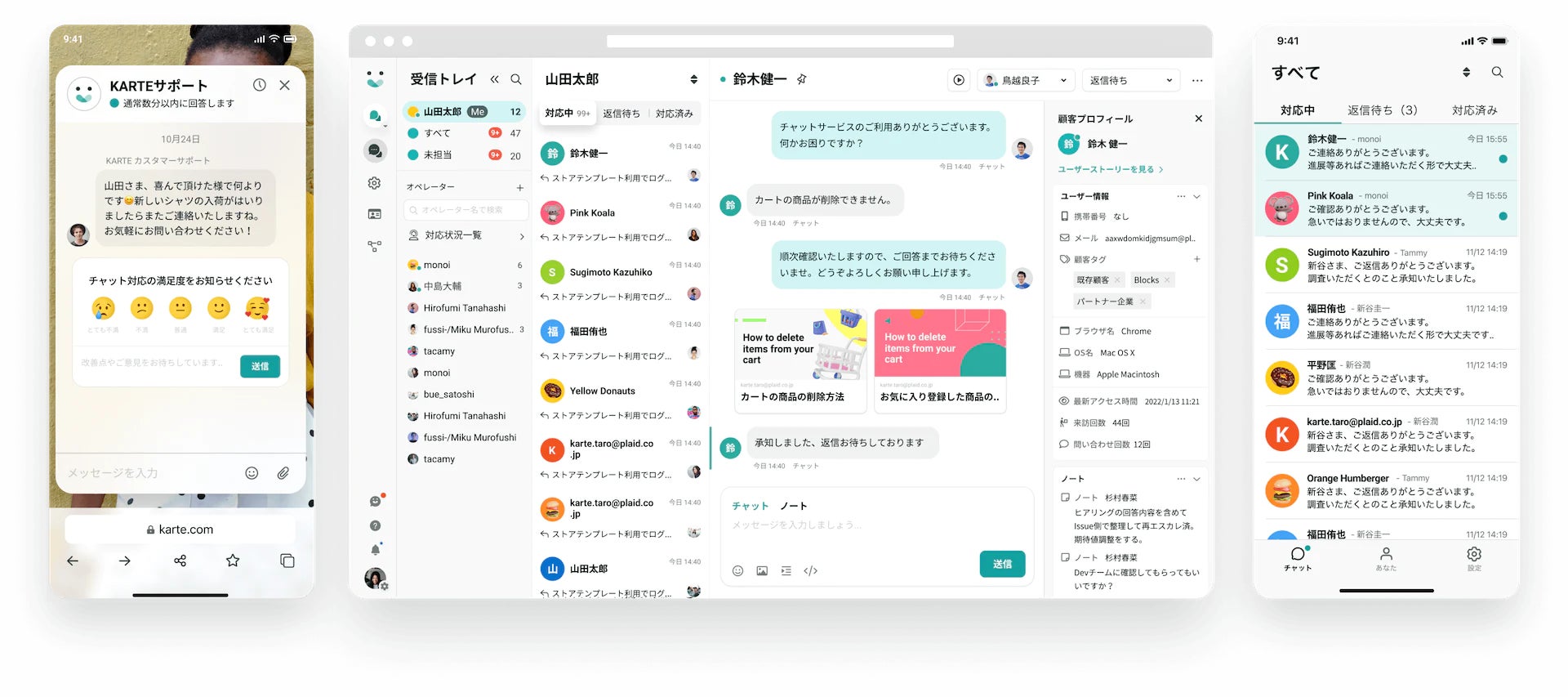 KARTEではKARTE Talkというチャットサポートのサービスを展開しています。