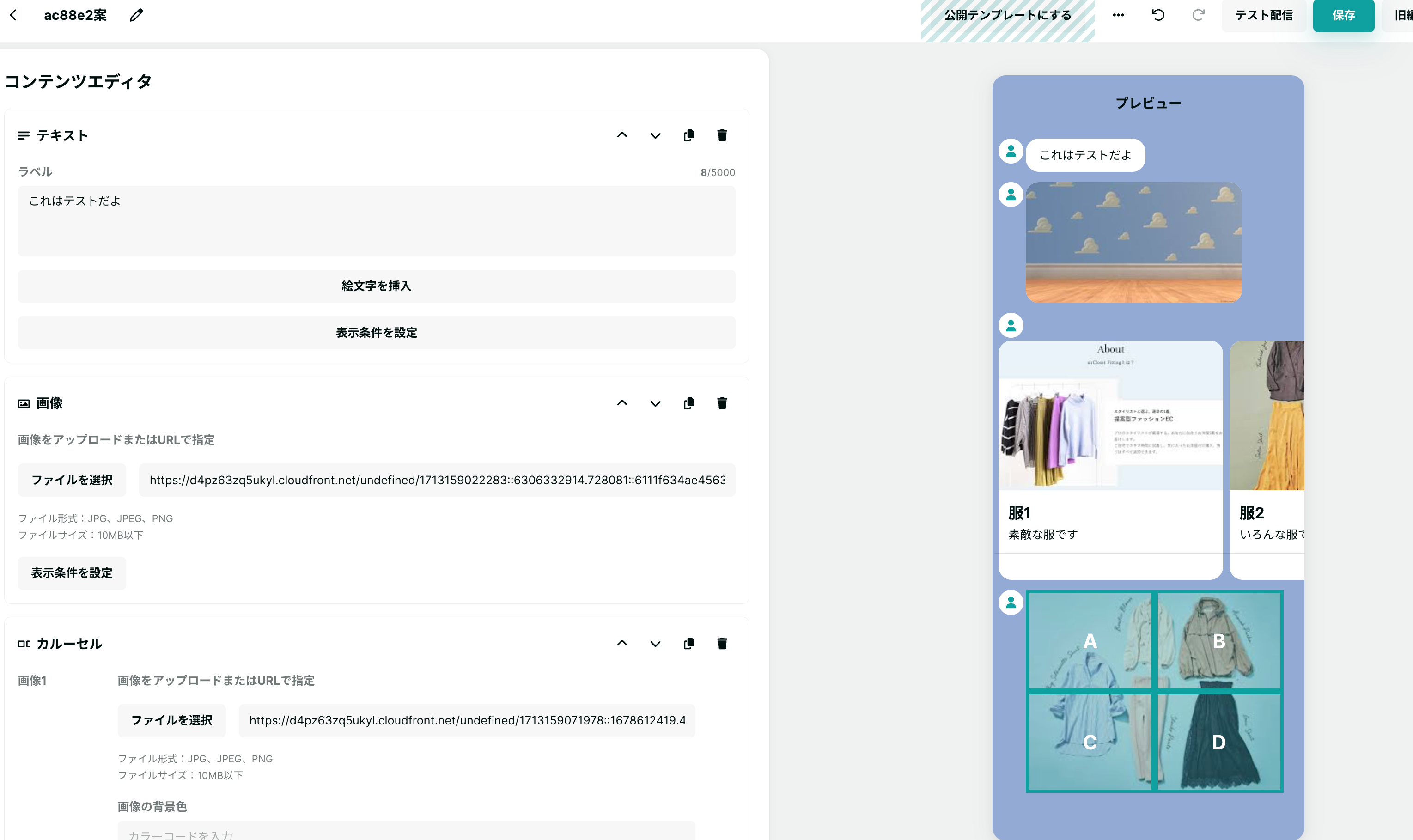 コンテンツの保存時に自動的にコンテンツのサムネイル画像を生成し、プレビューすることができる機能が存在するのですが、この機能が実装されているのはメール配信とプッシュ配信のみであり、LINE には実装されていませんでした。