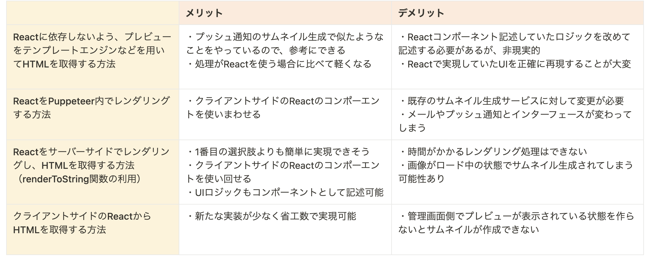 あるいは、サムネイル生成用サービスを改修し、Reactコンポーネントを描画する方法もとりえます。