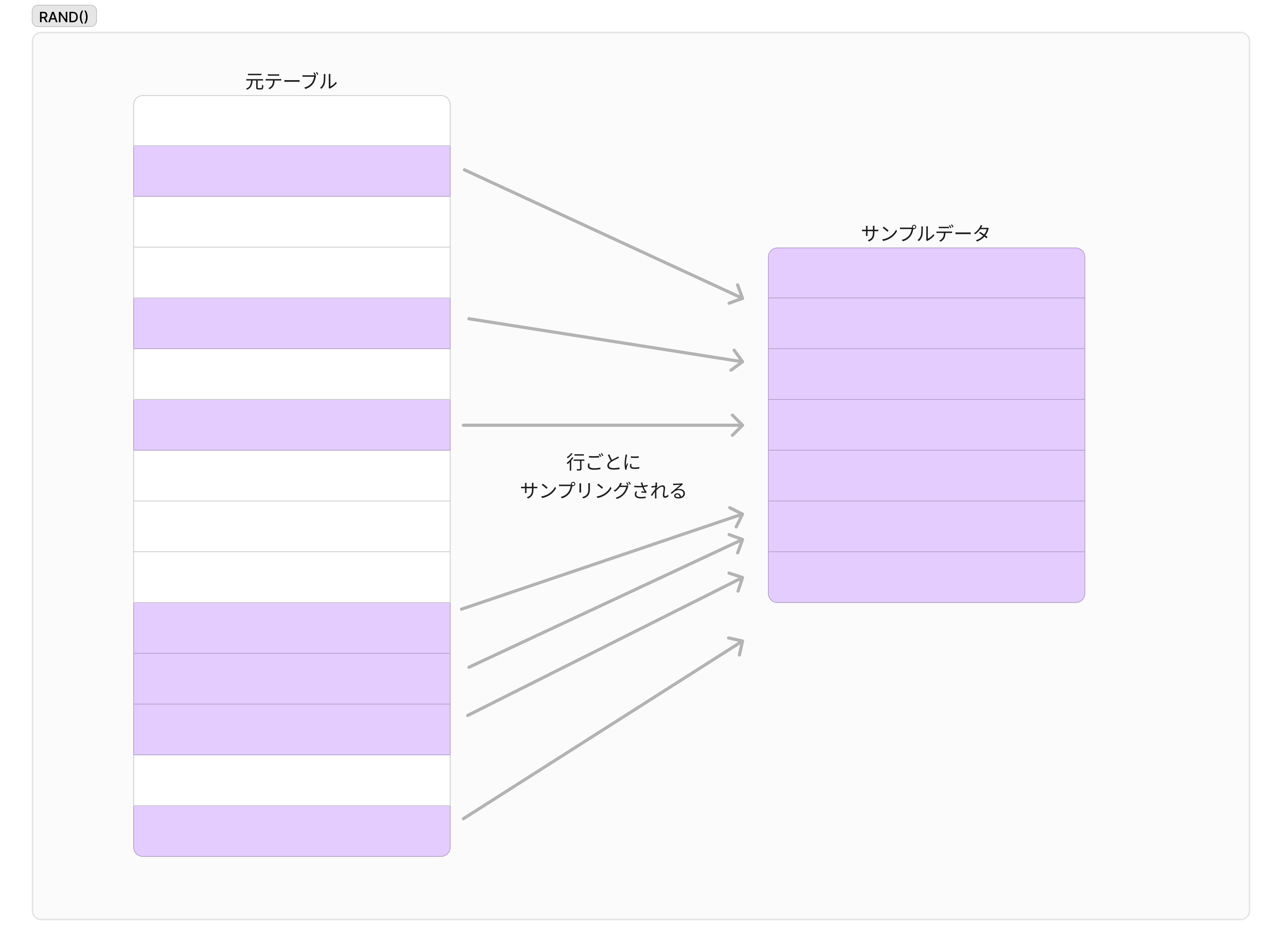 当初最適とみられた方法で課題に直面したため、代替案の検討を始めました。その結果、RAND関数をサンプリングに活用することにしました。