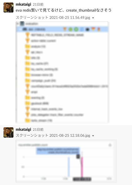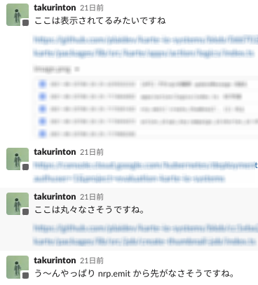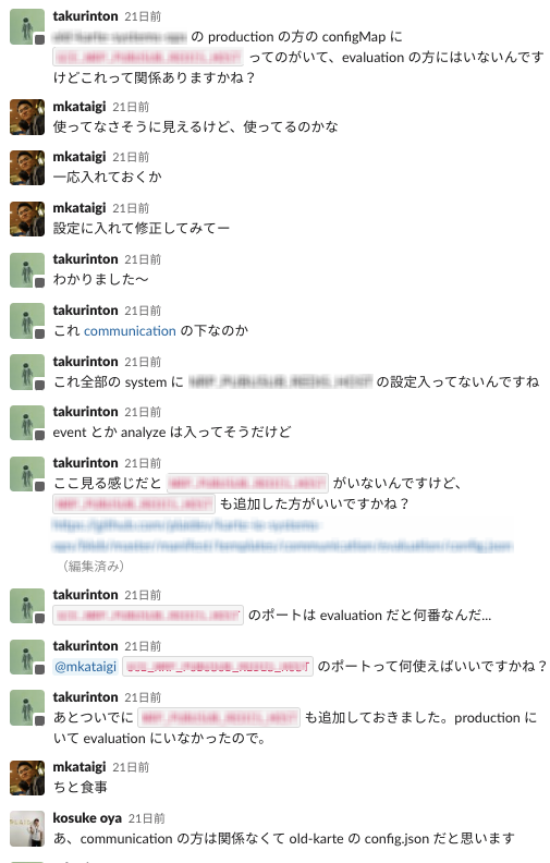今回、人を巻き込んだ例として、片居木さん(@mkataigi)と、2020年にインターン生からプレイドの正社員となった大矢さん(@Kosuke Oya)さんと一緒に調査をしたというものがありました。具体的な内容としては、先述した接客のスクリーンショットを撮るというタスクが 検証環境でのみ動作がおかしかったのでそこの調査を一緒にやっていただきました。