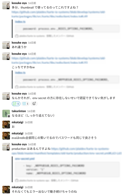 redis がおかしいことはわかったので、次は環境変数まわりを疑い始めました。それでもいまいちわからず...。