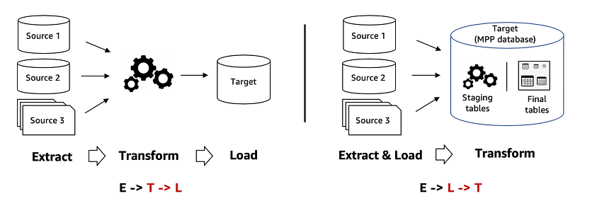 図2. ETLとELT ( https://aws.amazon.com/jp/compare/the-difference-between-etl-and-elt/ ) - Data Integration