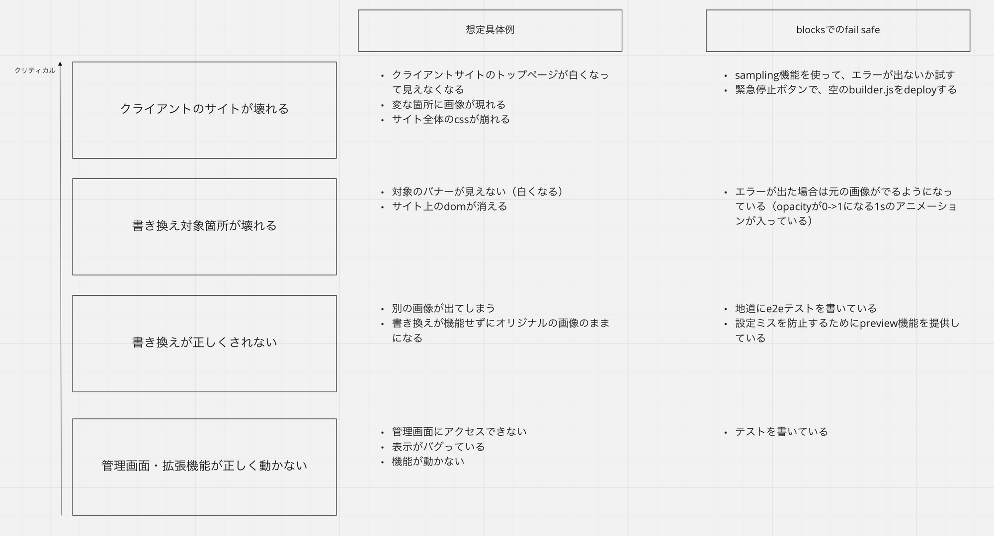 なぜなら、Blocksでコントロールしている外に障害の影響がでてしまい、クライアントに甚大な被害を与えてしまうことになるためです。