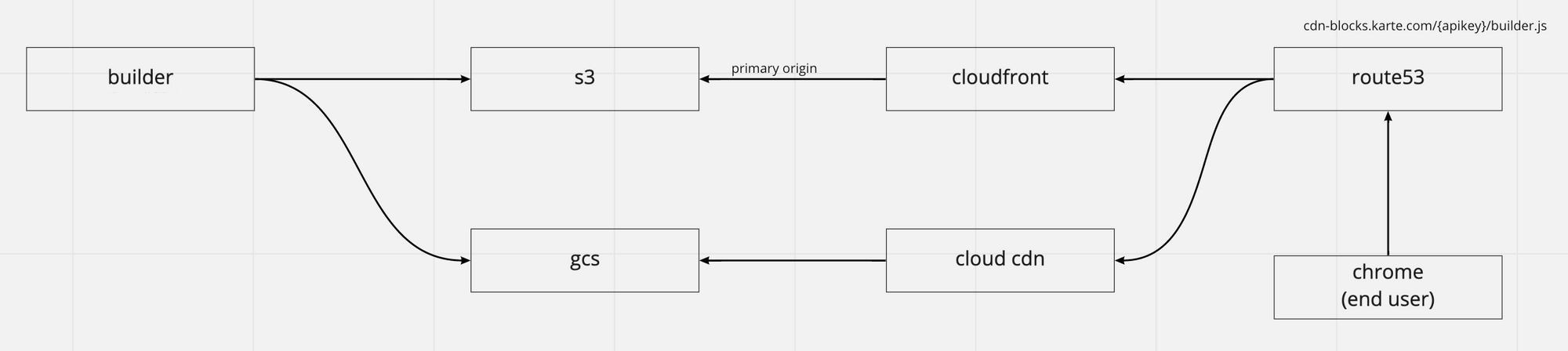 cdn-blocks.aws.karte.io→ CloudFront → S3cdn-blocks.aws.karte.io→ CloudFront → GCScdn-blocks.gcp.karte.io→ Cloud CDN → GCS