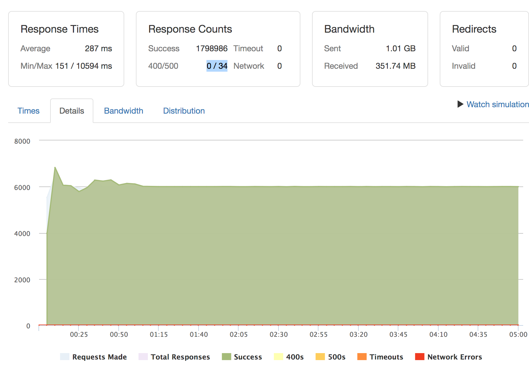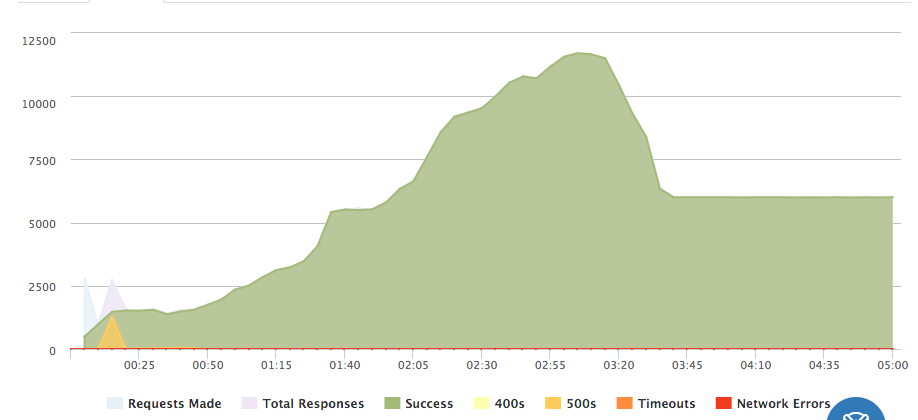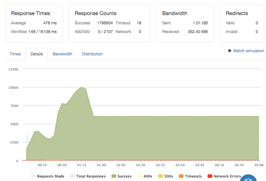 stress testはloader.ioというサービスで、6000qps(Queries Per Second)の負荷をかけて行いました。