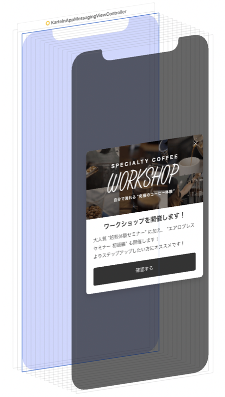 前提知識となるSDKについて簡単に説明します。SDKは、イベント送信APIやJavaScriptモジュールを読み込むコンポーネントを内包しており、管理画面で記述されたHTML/CSS/JavaScriptをSDKが管理するWebView(iOSではWKWebView)に読み込むことでアプリ内メッセージを表示できます。