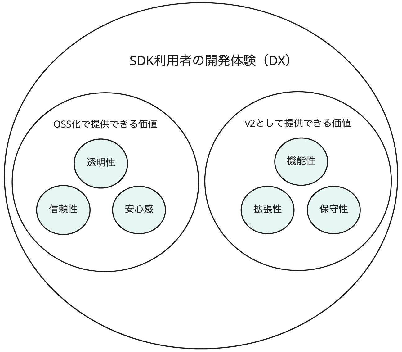 v1 SDKは、モノリシックなモジュールに多くの機能が詰め込まれており技術的負債が溜まっていました。また、利用者にとっての機能拡張性も十分に提供できているとは言えない状態でした。そのため、OSS化を良い機会と捉え、公開インターフェース及び内部実装の再設計を行い、保守性、拡張性などを高め長期的なSDKの品質維持が容易になるようにv1 SDKに対して非互換なアップデート(v2へのメジャーアップデート)を行う判断をしました。