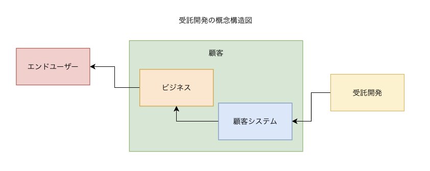 受託開発では顧客が仕様を決めてそれ通りに作るため、ソースコードなどの資産は顧客のものになり、顧客のものを修正することになるので修正一つ一つに契約の合意形成のプロセスが発生します。また、顧客のビジネスにほぼ100%アジャストすることが求められます。
