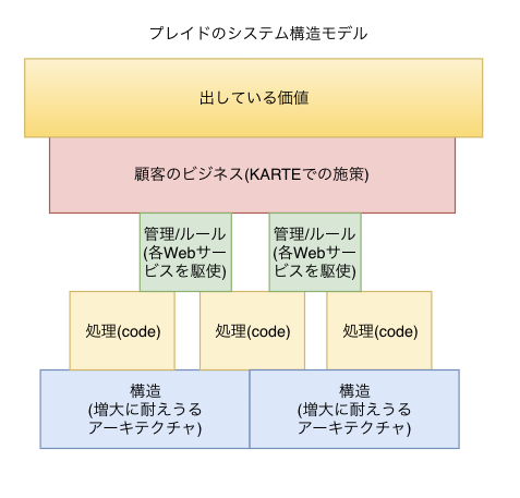 現状私が把握できているプレイドでの構造は上記のように認識しています。プロダクトリリースから3年半が経っていて、構築にあたって2010年代に作られたこともあり、最近技術を取り入れていると感じています。構造(アーキテクチャ)を見てみるとインフラはマルチクラウドで構成され、スモールスケールで増大が可能です。処理(ソースコード)に関しても日常的にリファクタリングが行われ、日々モジュール化が行われています。