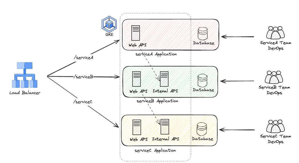 Each service’s owning team develops, operates, and maintains it, keeping independence under these principles:
