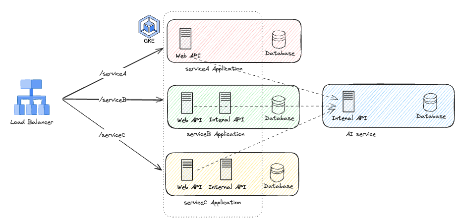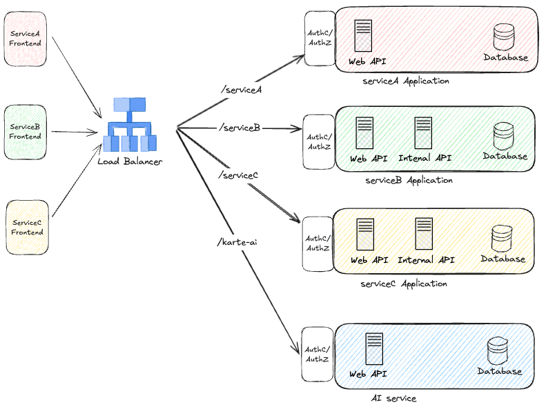 Previously, Frontend could only call its own service’s Web API. We removed that rule here. While it may introduce some confusion, the benefits outweighed the downsides. That rule exists to avoid other services depending on a Web API built for one service’s Frontend, which harms independence. KARTE AI is designed to be called by other services, so independence concerns don’t apply.