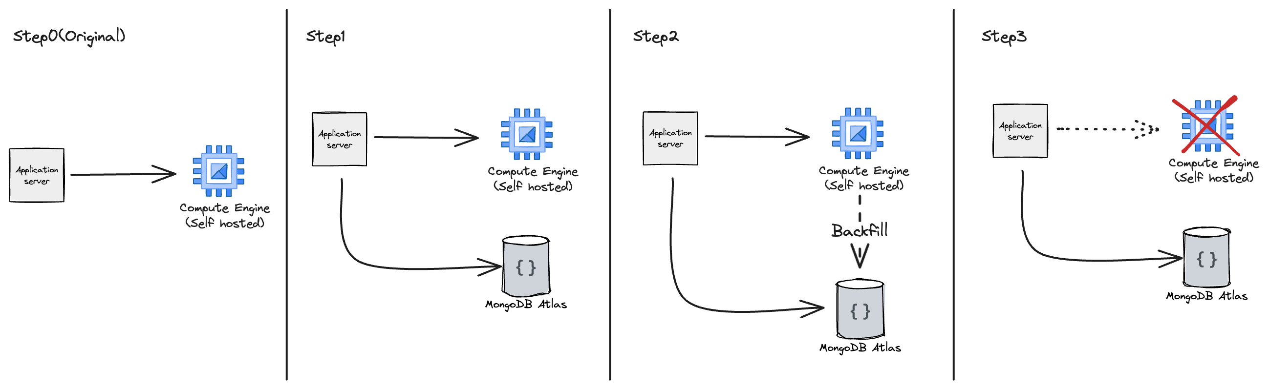 プレイドではアプリケーションの実行環境として多くの場所でGKEを使用しています。既存のデプロイの仕組みを流用するため、今回はデータ移行用のスクリプトをGKEのJobで実行することにしました。データ移行にあたっては以下の手順で段階的に進めていきました。