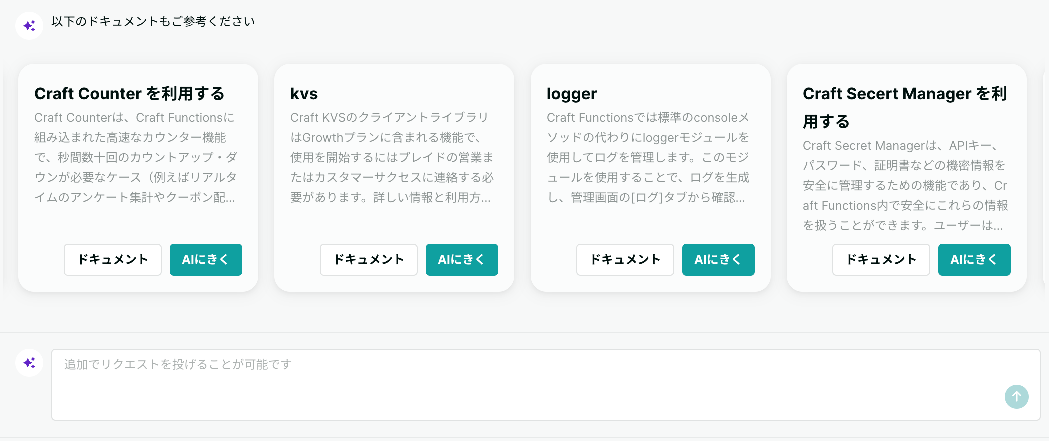 そして、 Craft Functions Copilot (以下、Functions Copilot) はその中の一機能で、Craft Functions の活用を支援してくれる AI アシスタントです。