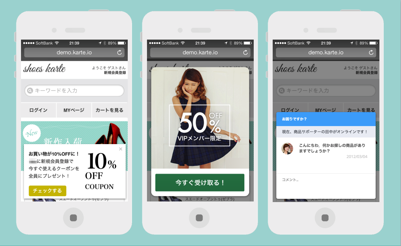 KARTEをお客様が利用する際には、来訪者をトラッキングしたり接客サービスを表示するためのscriptタグをお客様サイトに埋め込んでいただきます。