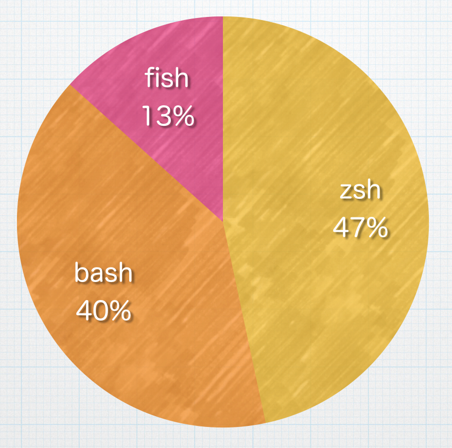 Unixシェルについても、Macターミナル標準の「bash」より、「zsh」の方がやや人気でした。