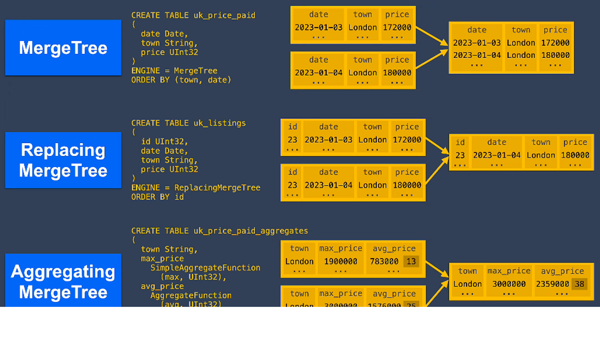 ちなみに、Merge treeの処理過程で重複排除を行ったり集約処理をかけることも可能です。