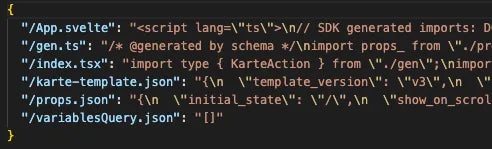 なお、action-compilerでfetchしてきたaction-sdkとsvelteですが、Skypack / esm.shではNPMをバックエンドとして使っているため、実質NPMに登録されているJavaScriptパッケージ(モジュール)です。action-sdkはKARTEのアクションを作るためのSDKで、アクションのコードは、このSDKで公開されている JavaScript API やSvelteコンポーネントによって構成されており依存します。