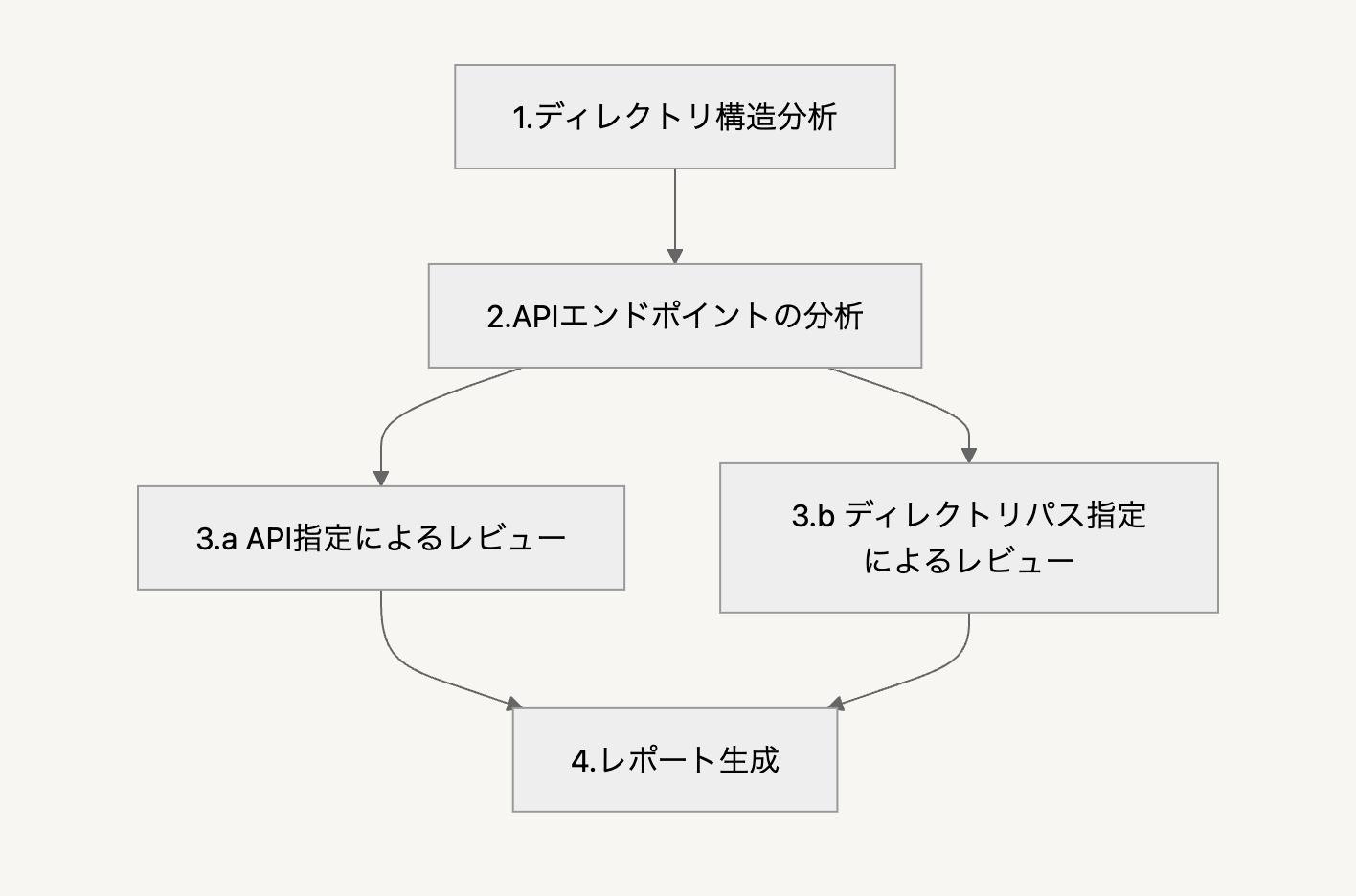 A[レビュー依頼と前提条件の確認] --> B[コード分析と構造理解]