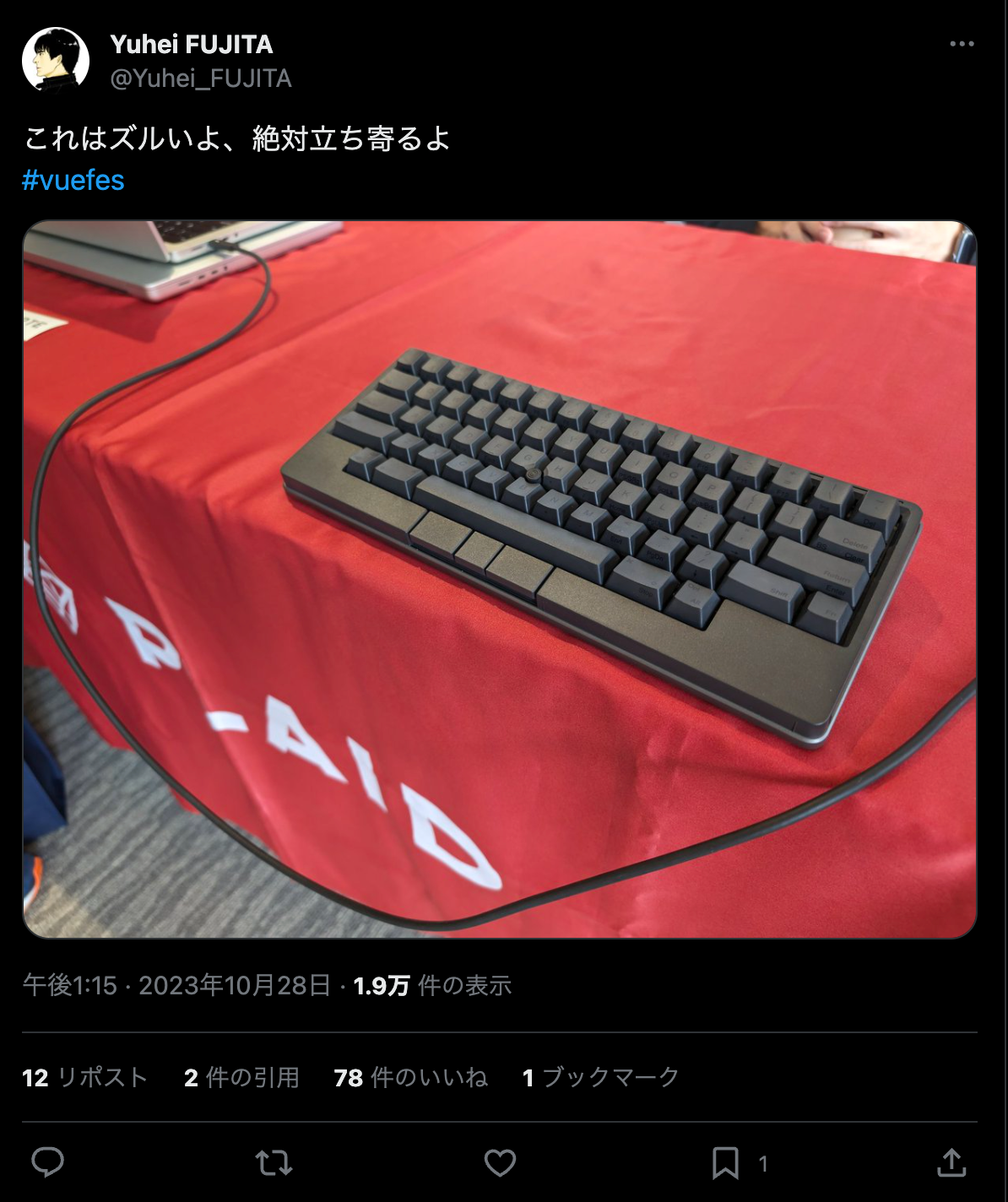 とさの個人的な趣味でVue Fesの開催二日前に発売されたHHKB Professionalのお試し会も開催しました。興味を持ってくださる方が多くて嬉しかったです。