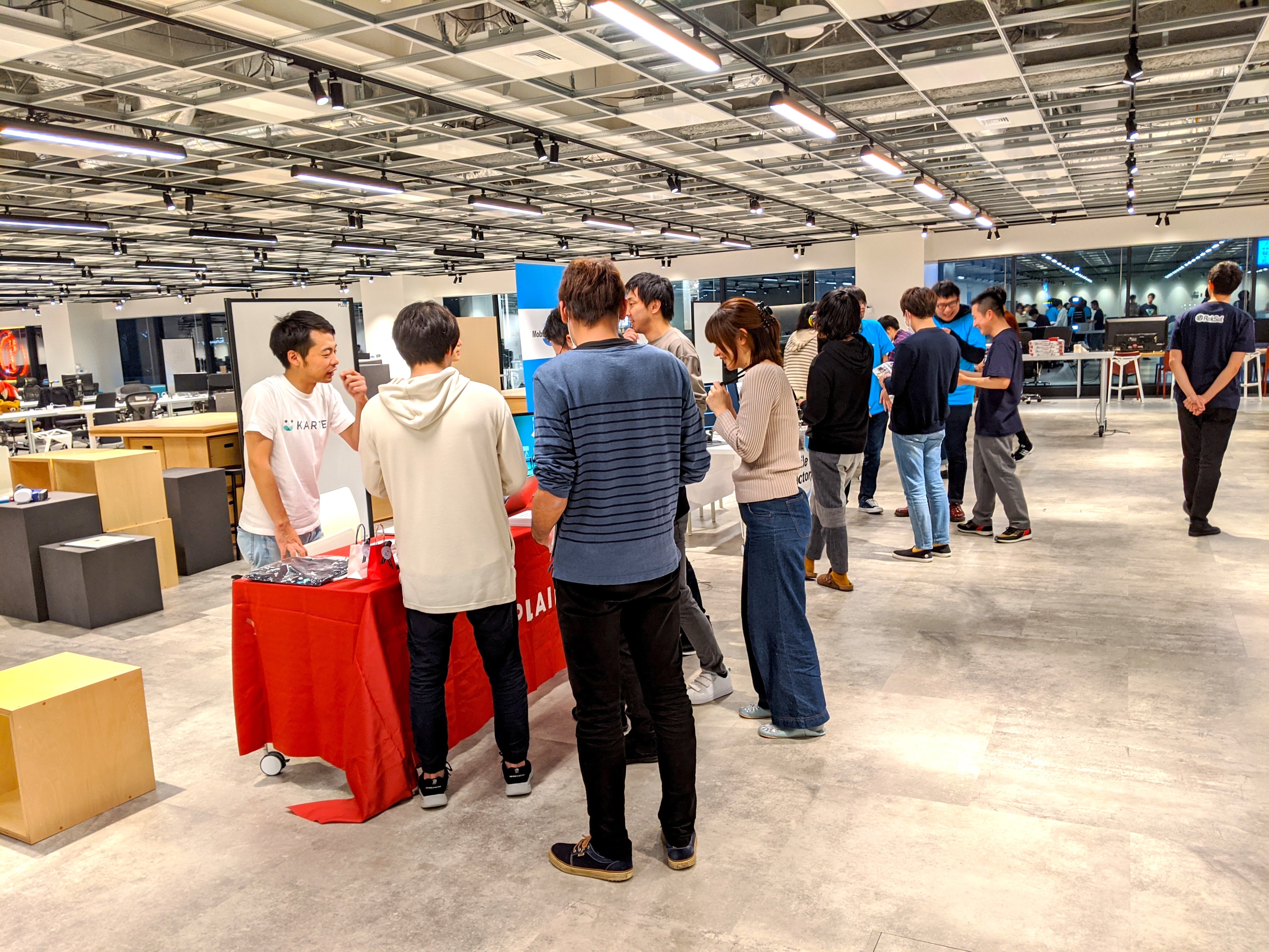 会場はプレイドのオフィスを使い、LTや、スポンサーブース、懇親会など盛りだくさんの内容でした。