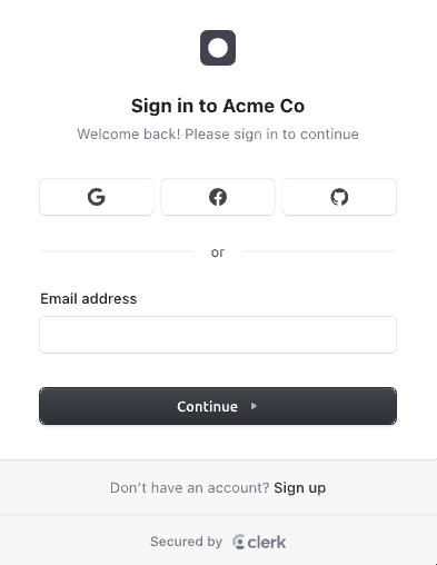 例えば、Clerkが提供する<SignIn />コンポーネントを一行書くだけで画像のようなよくあるサインインUIを実現することができます。